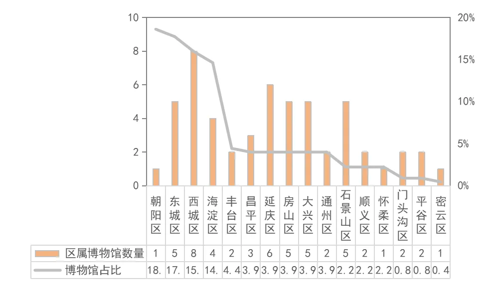 區屬博物館形成“核心集聚、外圍開花”的空間格局。超五成區屬博物館集中在西城區、延慶區、東城區、石景山區、房山區和大興區六個區。其中,西城區、東城區作為北京博物館高度集聚的“核心區”,分別坐擁8家、5家區屬博物館。在城市外圍,延慶區、房山區和大興區等區域分別擁有6家、5家和5家區屬博物館,博物館建設正在從中心向周邊蓬勃發展,形成了“多點開花”的空間布局。